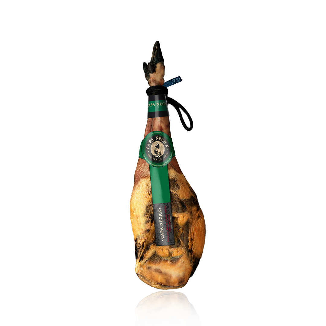 Procedente de Cerdos Ibéricos criados en libertad en las Dehesas del Suroeste Peninsular. Como nuestro Jamón Ibérico de Cebo de Campo es la culminación de un largo proceso de elaboración: raza ibérica, Dehesa, alimentación natural, sal, reposo y tiempo.Nuestros Cerdos Ibéricos se alimentan de hierbas aromáticas y cereales naturales. Esta alimentación unida al ejercicio realizado por el Cerdo en libertad, contribuye al desarrollo de su musculatura, con la proporción perfecta entre la carne y la grasa necesaria para producir el veteado característico que distingue la calidad organoléptica de su carne. Pieza estilizada, con pezuña negra y de caña fina. La grasa externa es blanda y de textura suave. Perfilada con el característico corte en media luna. El proceso de elaboración es supervisado día a día por nuestros maestros jamoneros, garantes de la calidad de nuestras piezas y fieles transmisores de la tradición de Jabugo, donde nuestros paletas maduran en bodegas naturales al ritmo de las estaciones. El proceso de curación es entre 16 y 20 meses.
