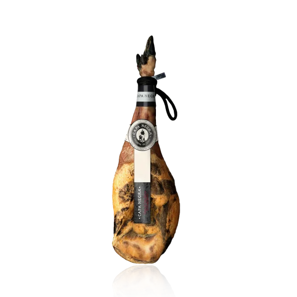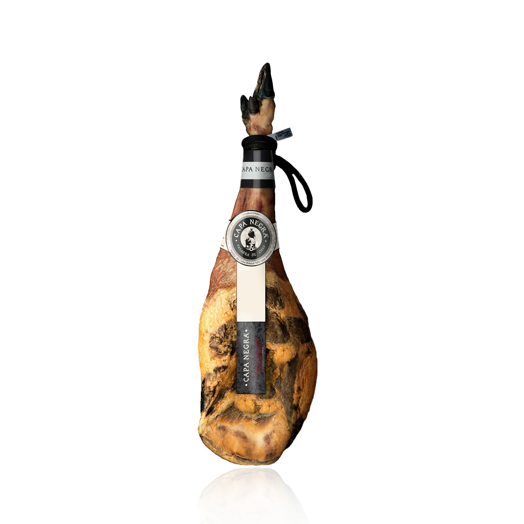 Pieza estilizada, con pezuña negra y de caña fina. La grasa externa es blanda y de textura suave. Perfilada con el característico corte en media luna.